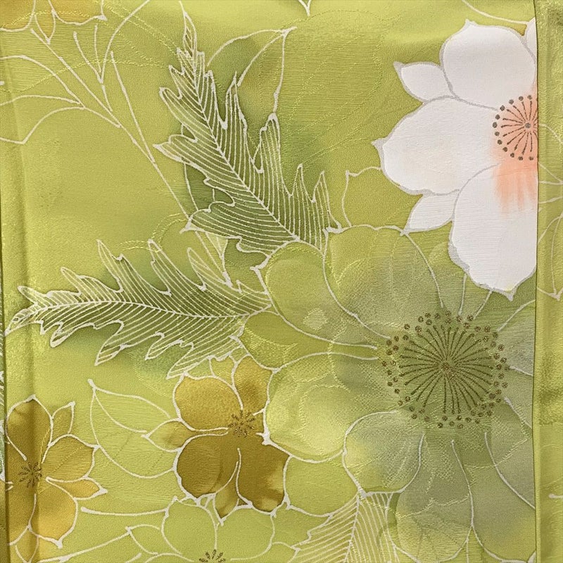 【颜色 花型】黄绿色 金彩织物 花朵 草花