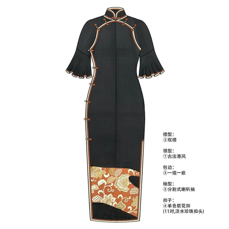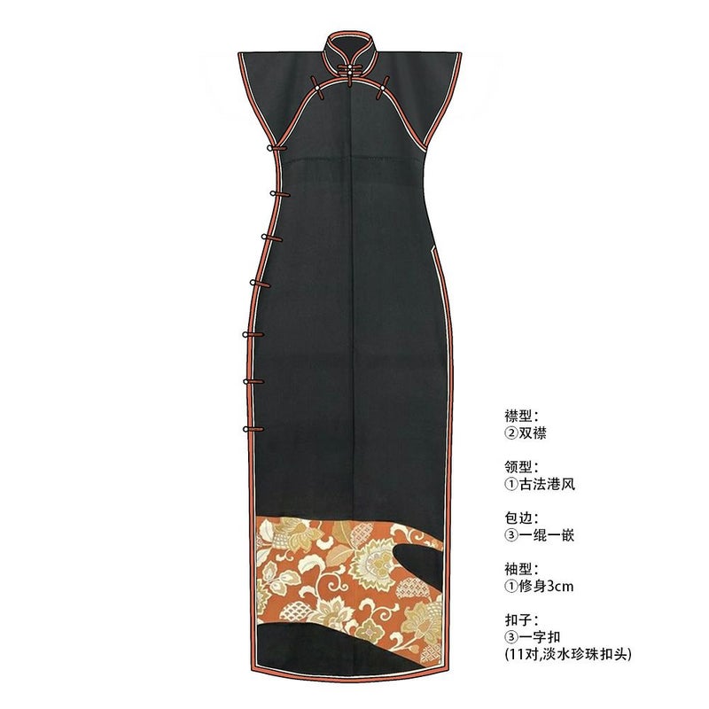 古法旗袍定制 黑留袖 黑色 金彩 金线刺绣 唐草云图 チャイナドレス 仕立て オーダーメイド