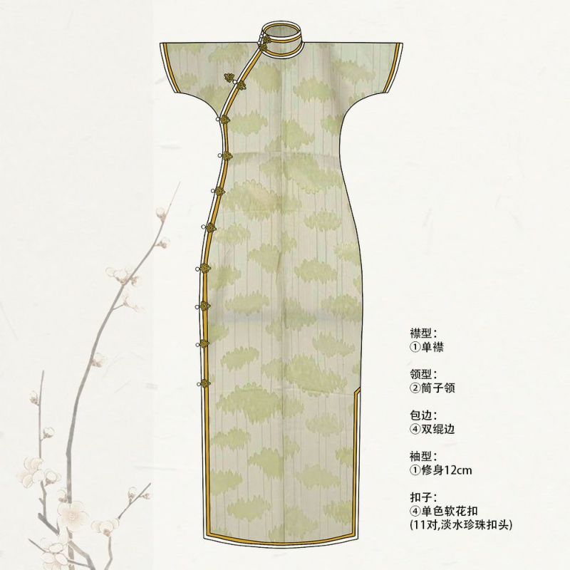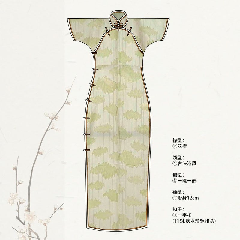 古法旗袍定制 小纹 绿色 抽象图案 チャイナドレス オーダーメイド 仕立て