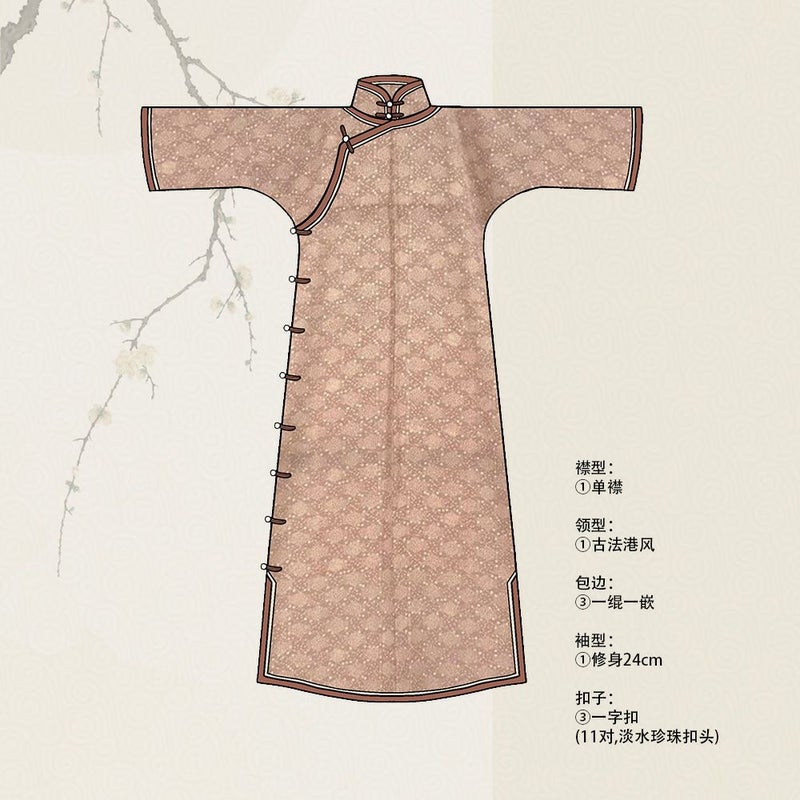 古法旗袍定制 小纹 粉色 小花纹样 缩缅 チャイナドレス 仕立て オーダーメイド