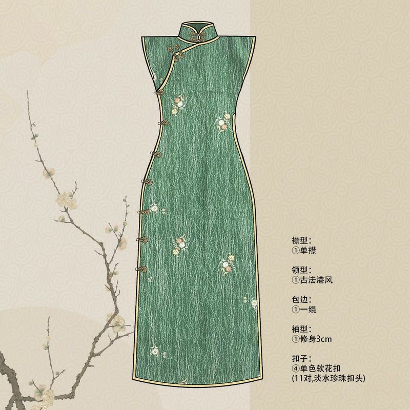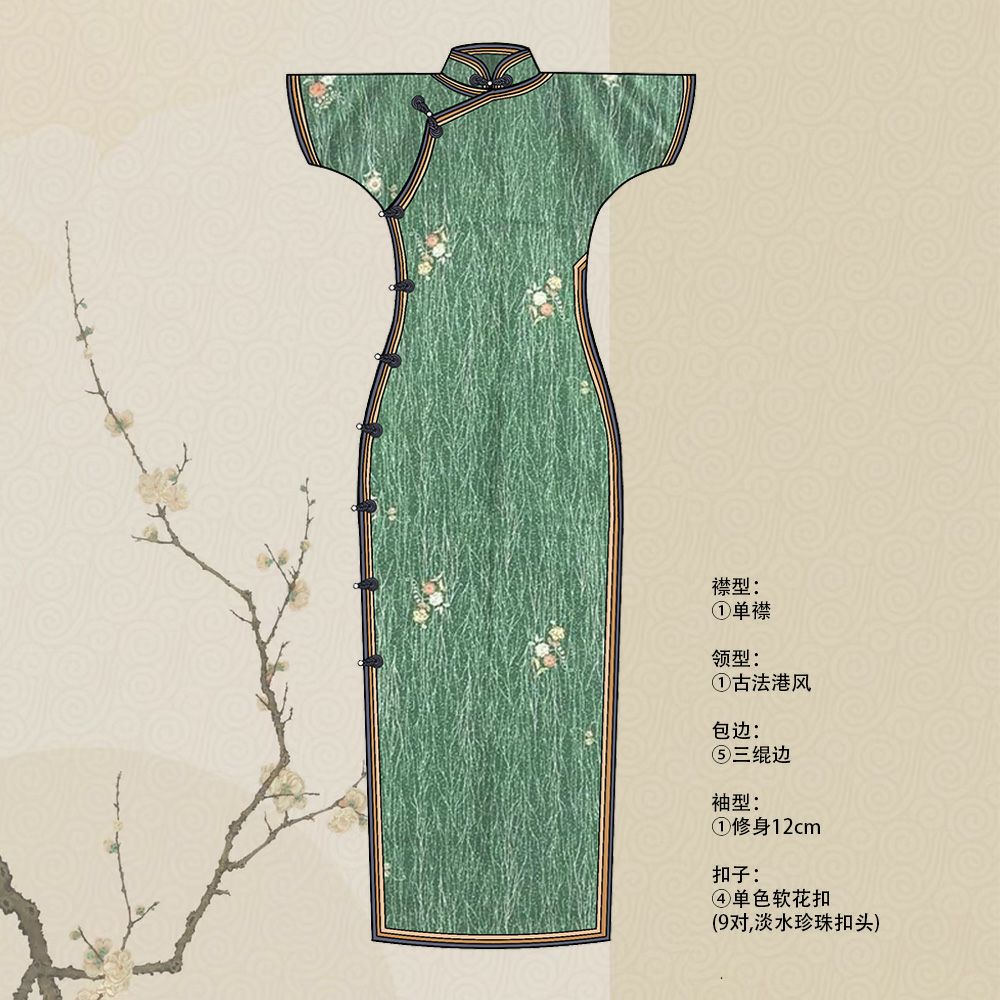 古法旗袍定制 小纹 绿色 缩缅 小花 チャイナドレス 仕立て オーダーメイド カジュアル