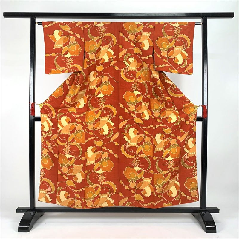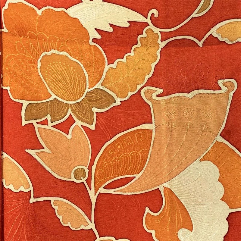 古法旗袍定制 小纹 橙色 唐花和唐草图案 暗纹 チャイナドレス 仕立て オーダーメイド