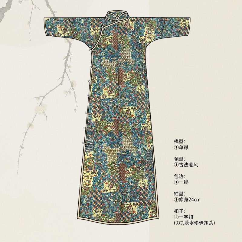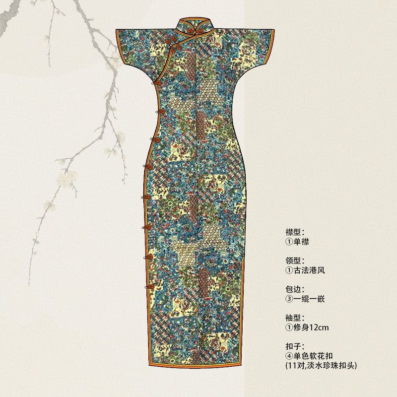 古法旗袍定制 小纹 青蓝色 切割古典纹样 缩缅 チャイナドレス 仕立て オーダーメイド