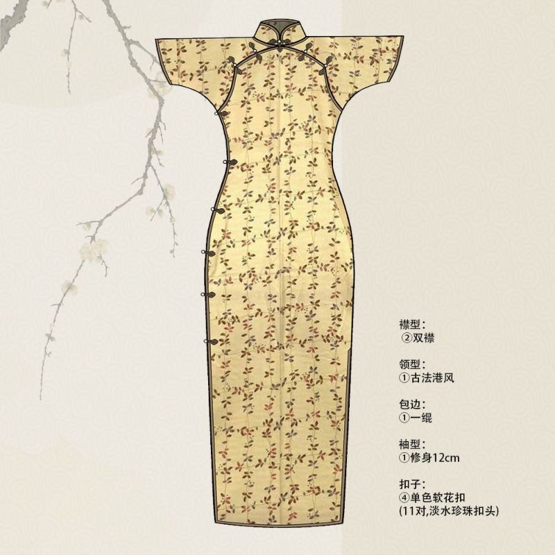 古法旗袍定制 小纹 米白色 树叶格纹图案 チャイナドレス 仕立て オーダーメイド