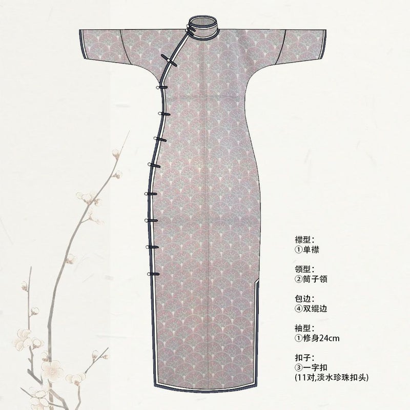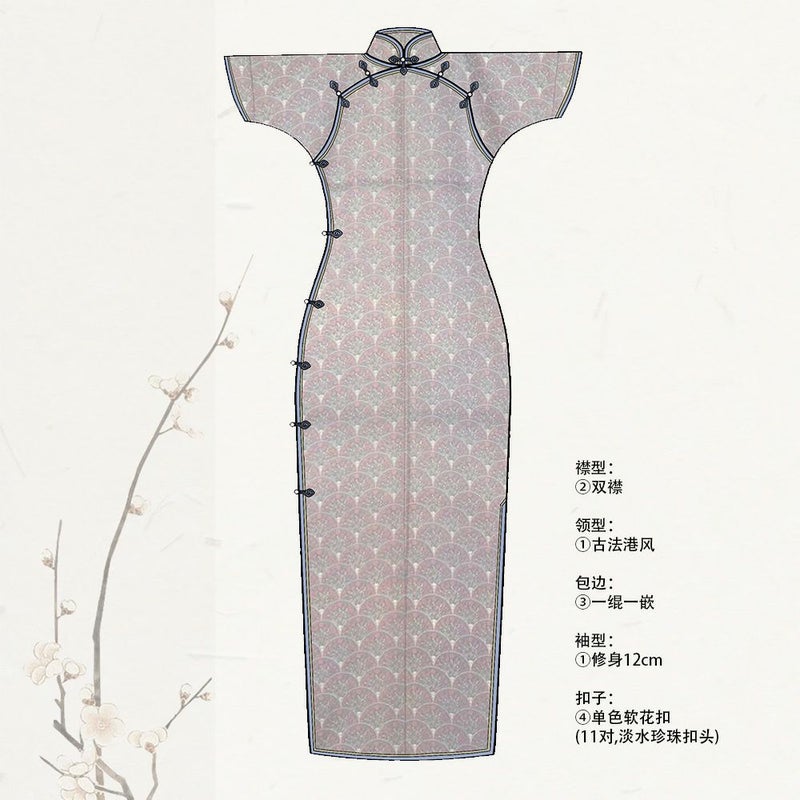 古法旗袍定制 小纹 淡紫色 青海波小花纹样 チャイナドレス 仕立て オーダーメイド カジュアル