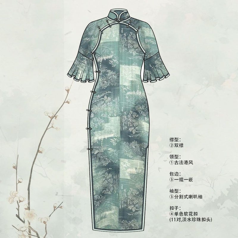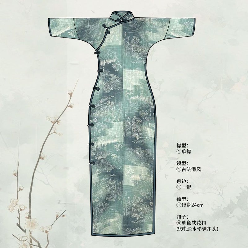 古法旗袍定制 小纹 水绿色 灰色 古典花纹 チャイナドレス オーダーメイド カジュアル