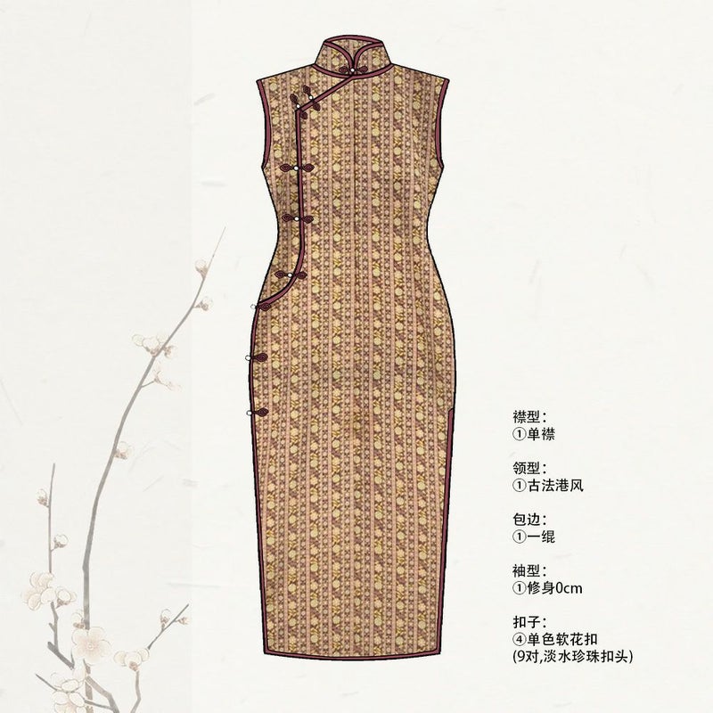 古法旗袍定制 小纹 紫色 小花图案竖条纹 チャイナドレス 仕立て オーダーメイド