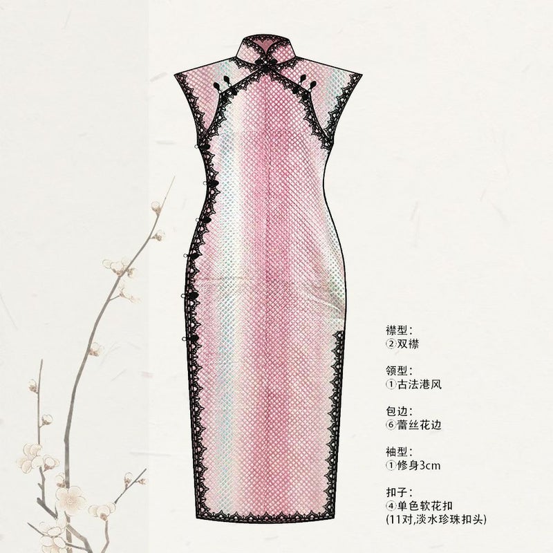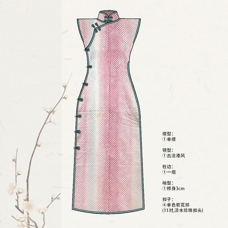 古法旗袍定制 小纹 粉色 鹿子绞暗纹 チャイナドレス 仕立て オーダーメイド