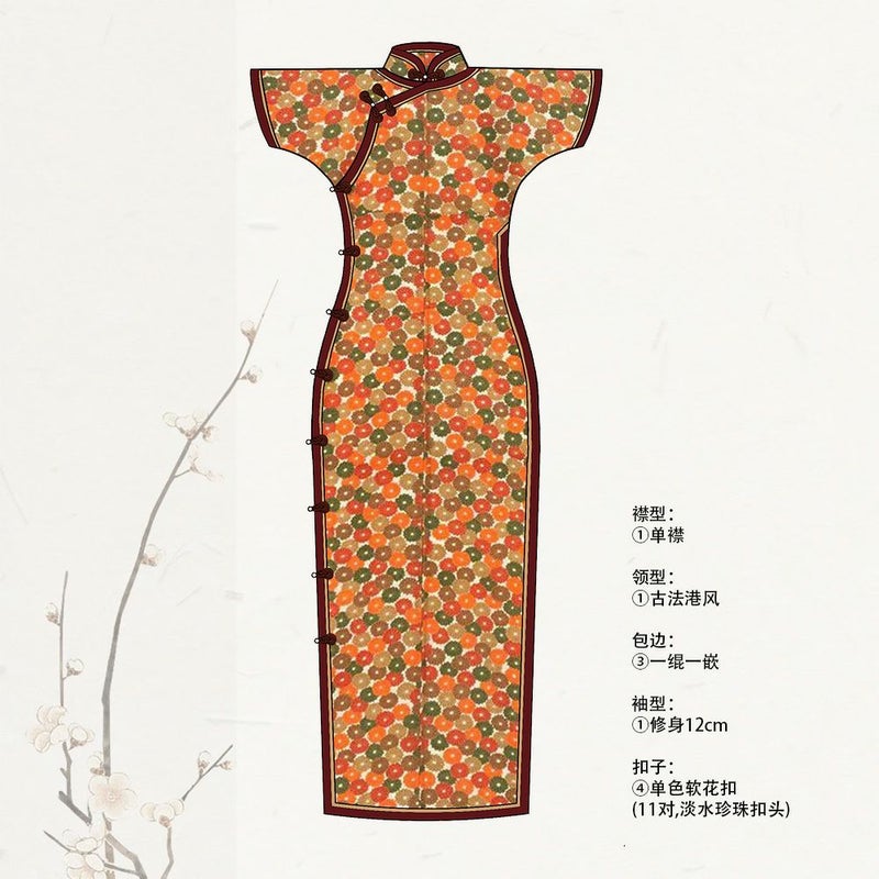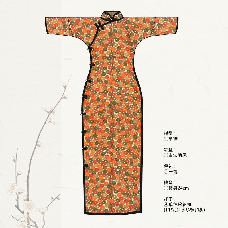古法旗袍定制 小纹 彩色 菊花图案 チャイナドレス 仕立て オーダーメイド