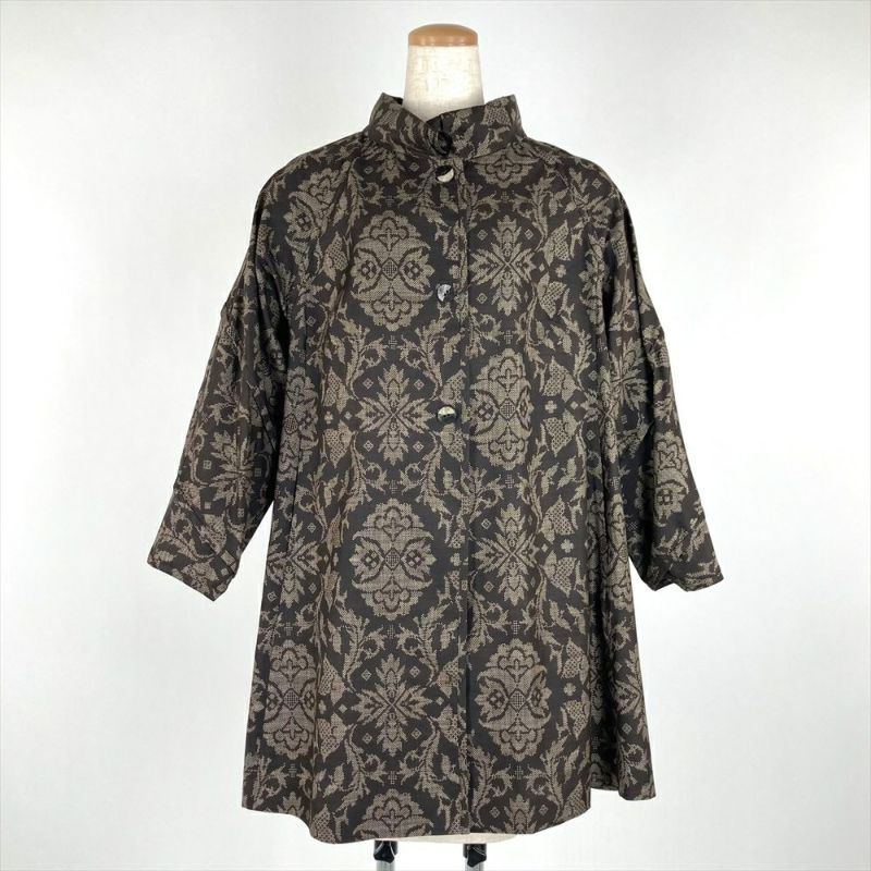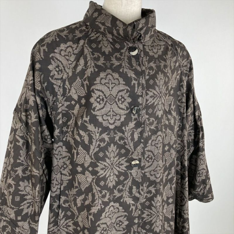 (リメイク) マント風コート 焦げ茶色 カジュアル 紬地 オリエンタル