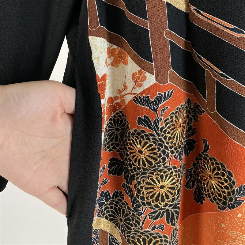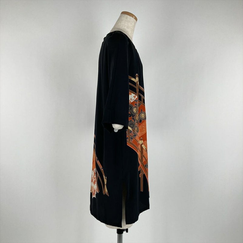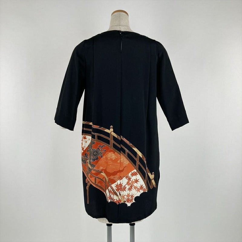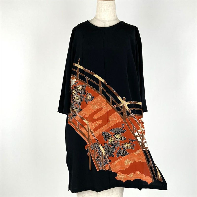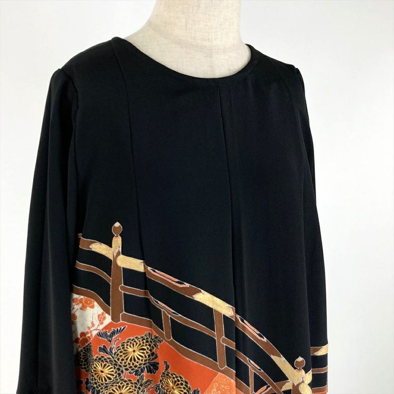 (リメイク) チュニック 黒色 カジュアル 刺繍 金彩 大橋 ワンピース