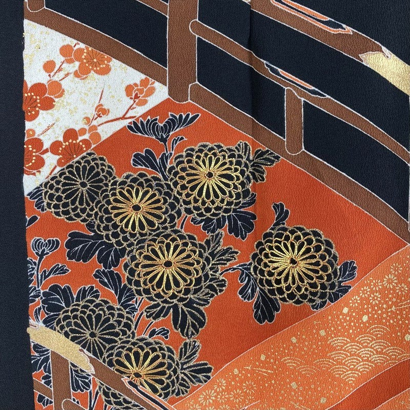 【色柄】黒色 カジュアル 刺繍 金彩 大橋