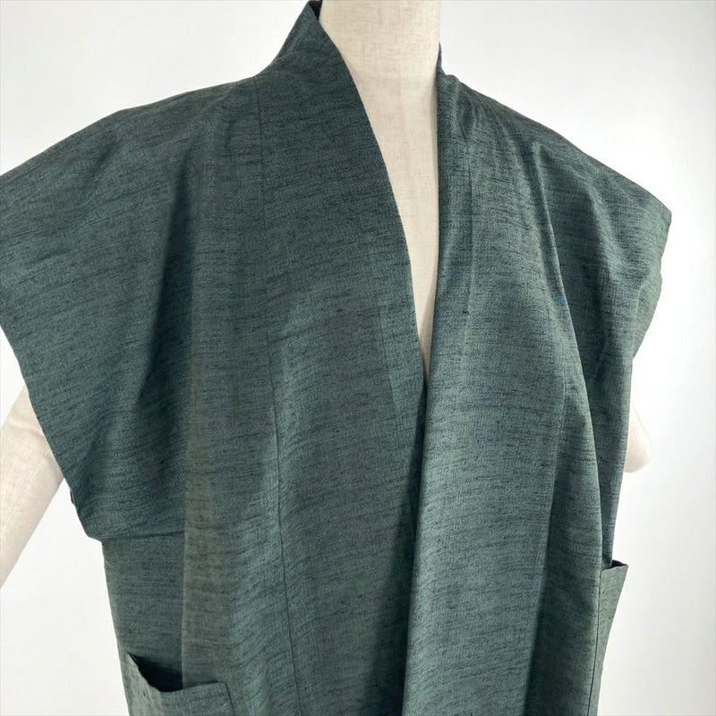 (リメイク) 陣羽織 緑色 カジュアル 紬地