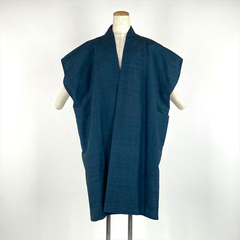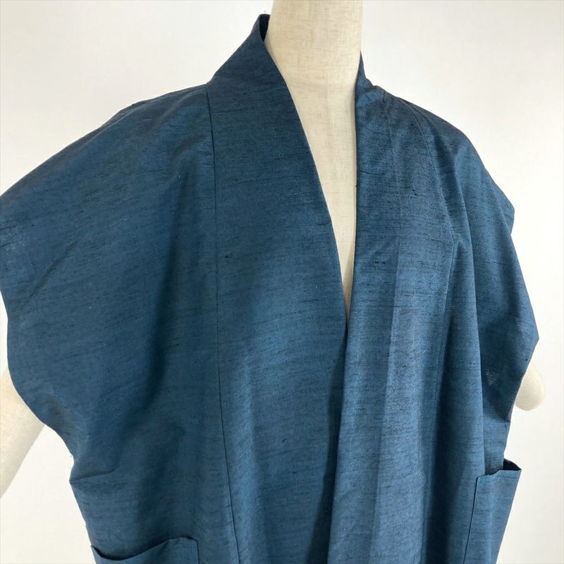 (リメイク) 陣羽織 紺色 カジュアル 紬地