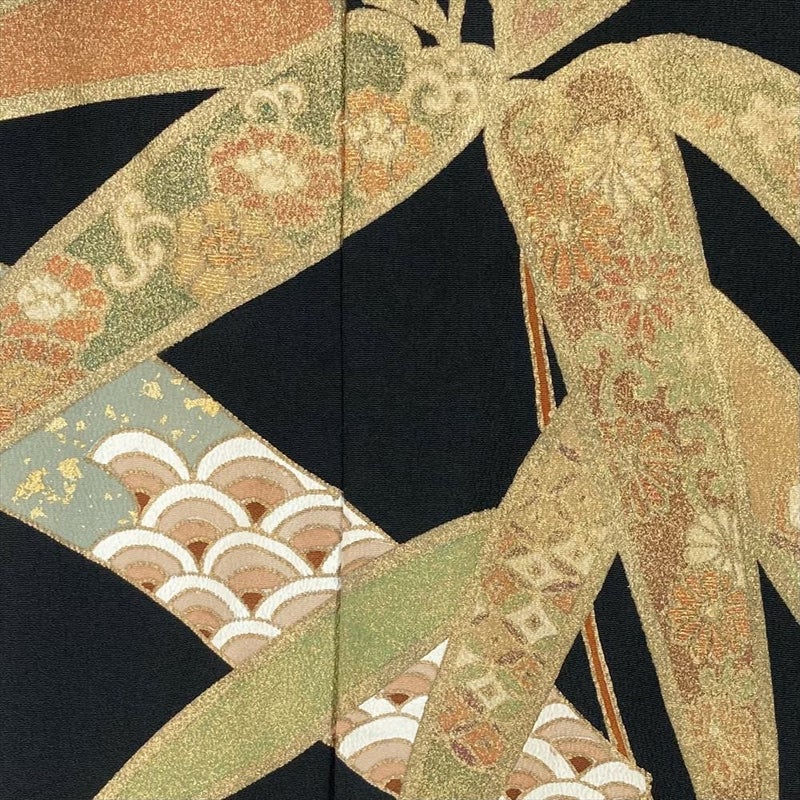 【色柄】黒色 カジュアル 刺繍 金彩 笹竹