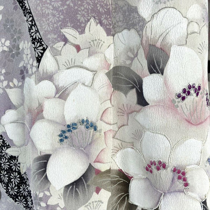 【色柄】黒色 カジュアル 刺繍 道長取り 四季花