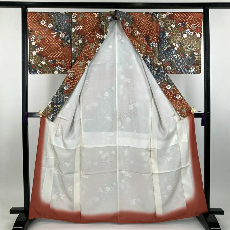 【色柄】赤 青 マルチカラー カジュアル 地紋織り 染め 金彩 梅 橘