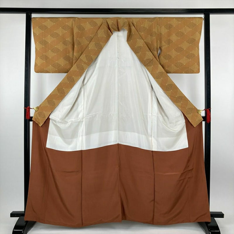 【セット⑰】(中古)小紋&名古屋帯 黄 からし 緑 カジュアル【身丈】158.5cm【裄丈】67.5cm