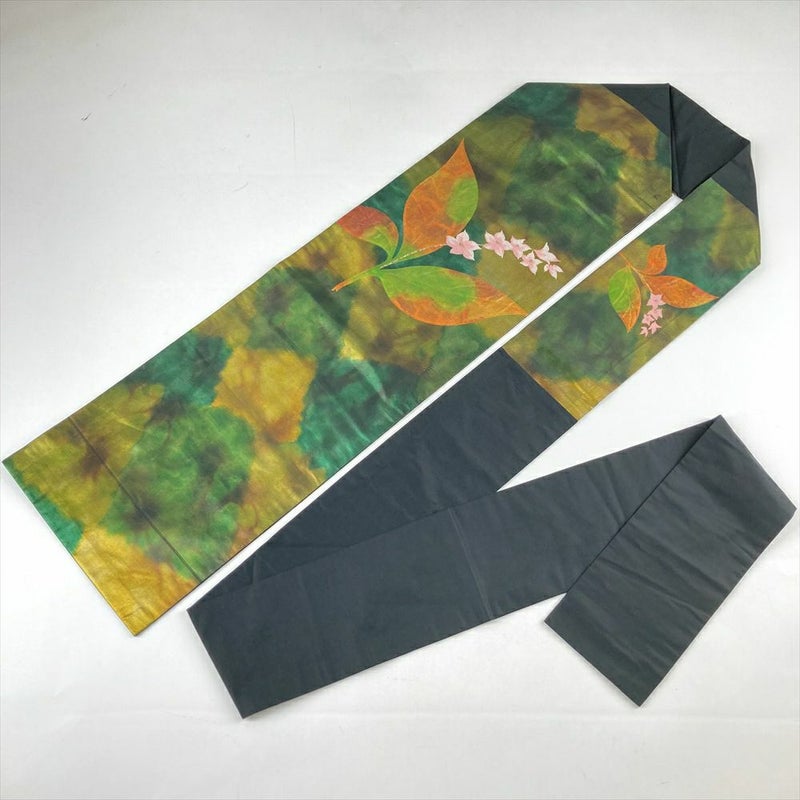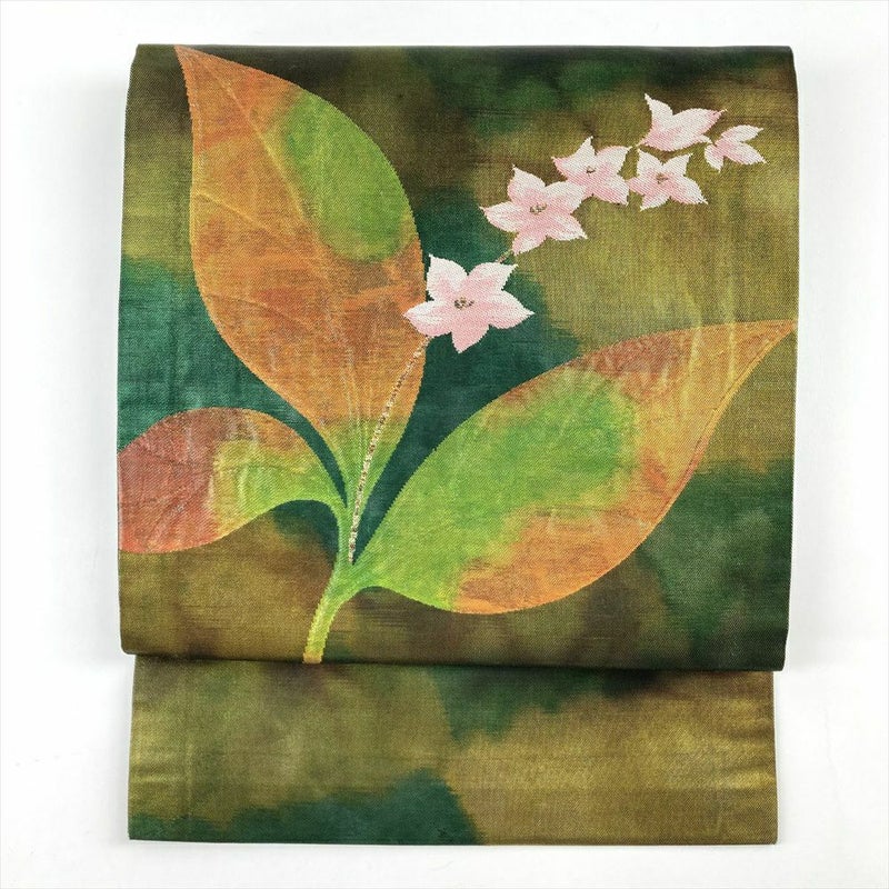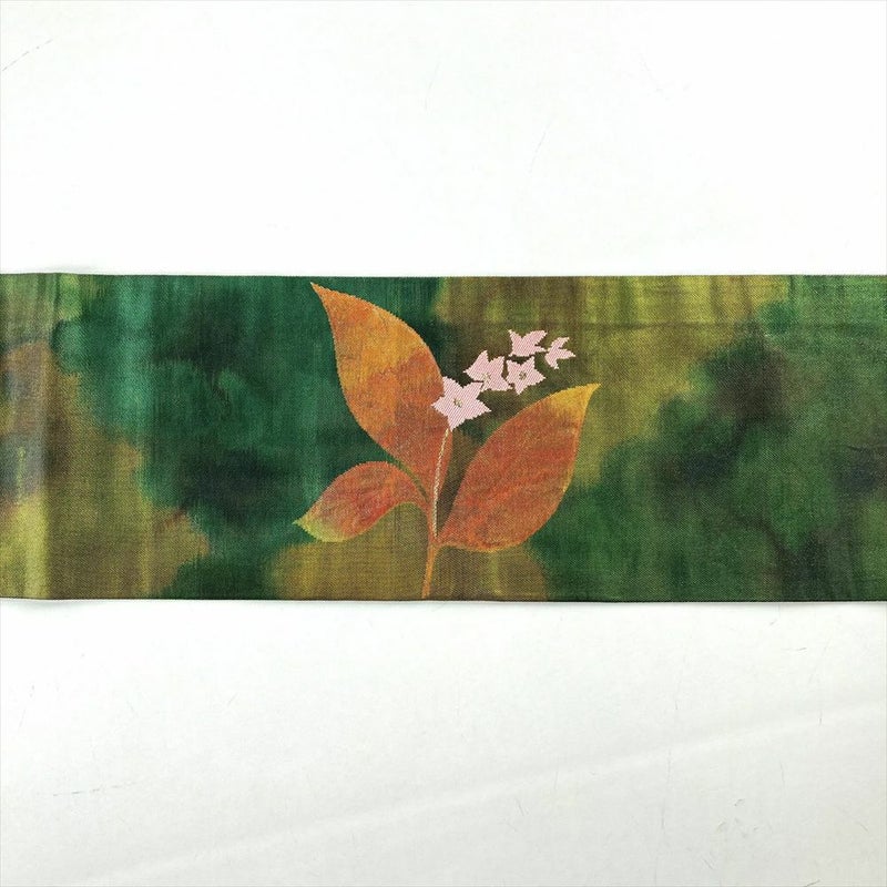 【色柄】緑 カジュアル 切箔 花葉 織り