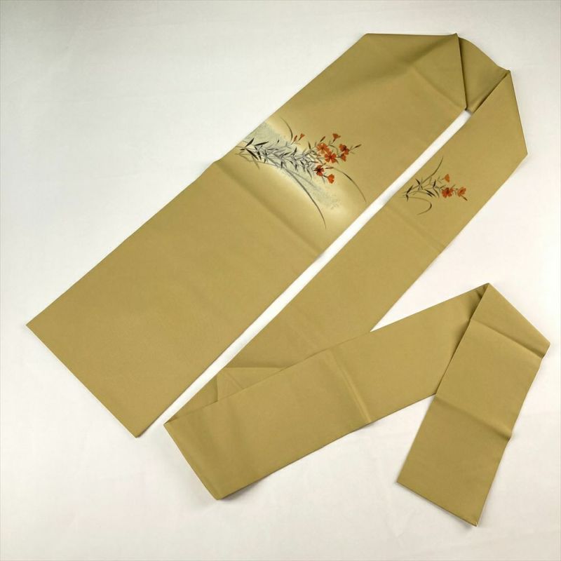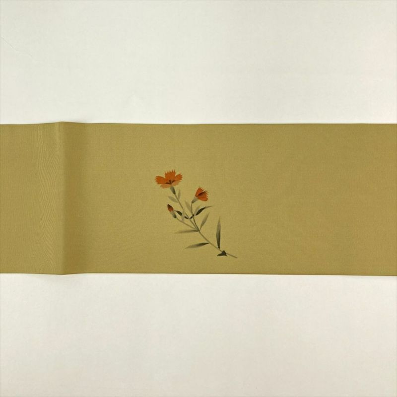 【色柄】黄色 芥子色 カジュアル なでしこ 塩瀬 手描き 金彩