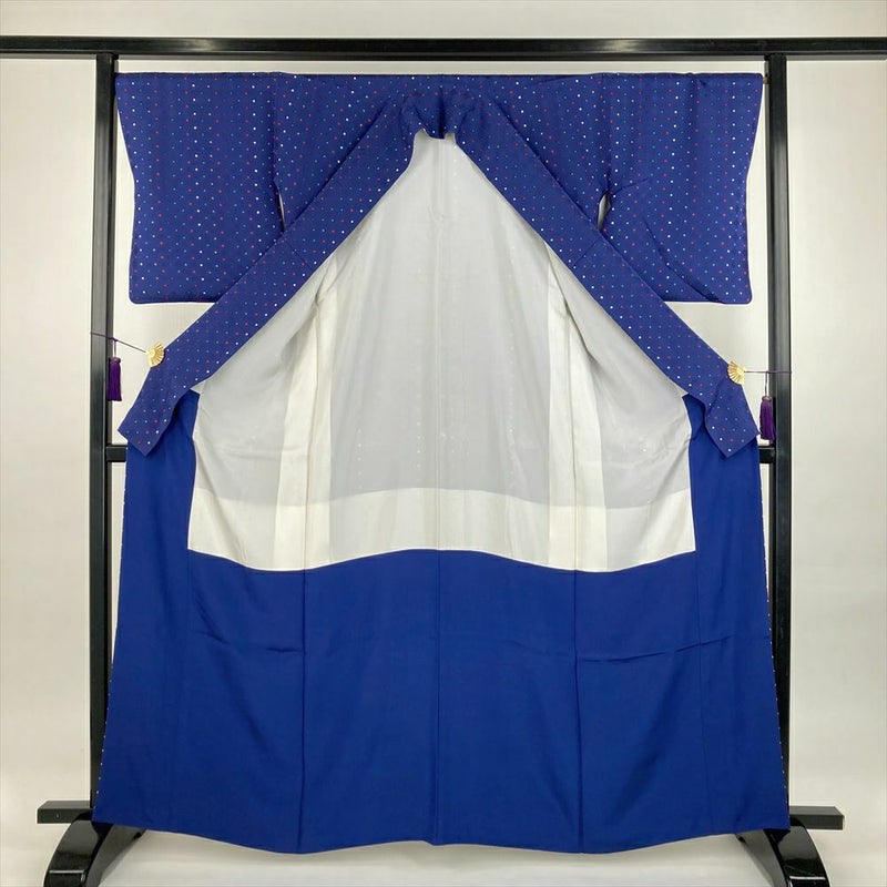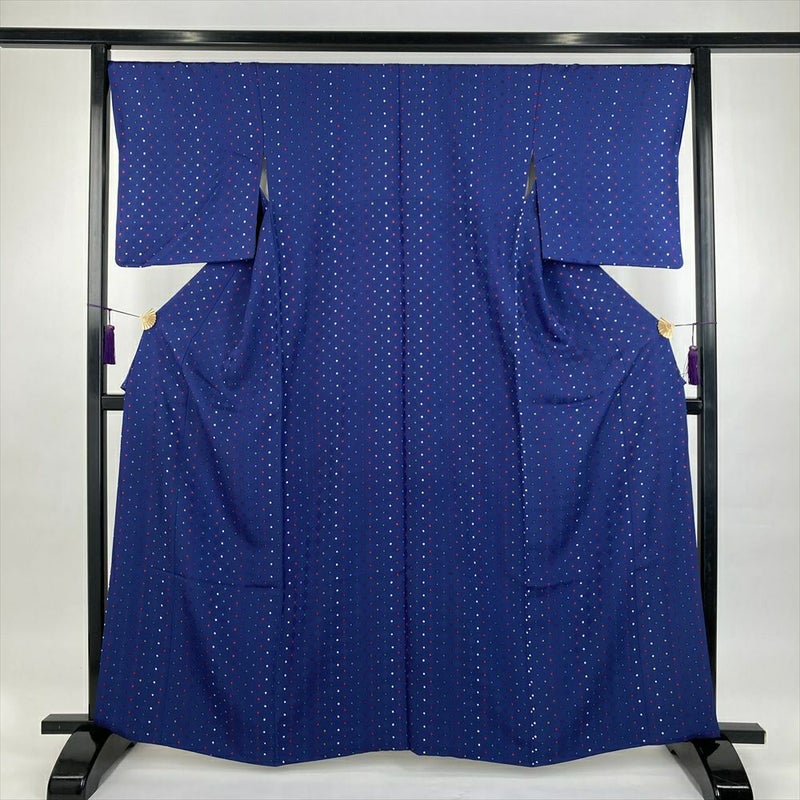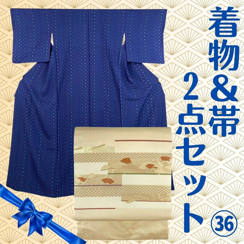 【セット36】(中古)小紋&名古屋帯 青 生成り カジュアル【身丈】161cm【裄丈】69cm