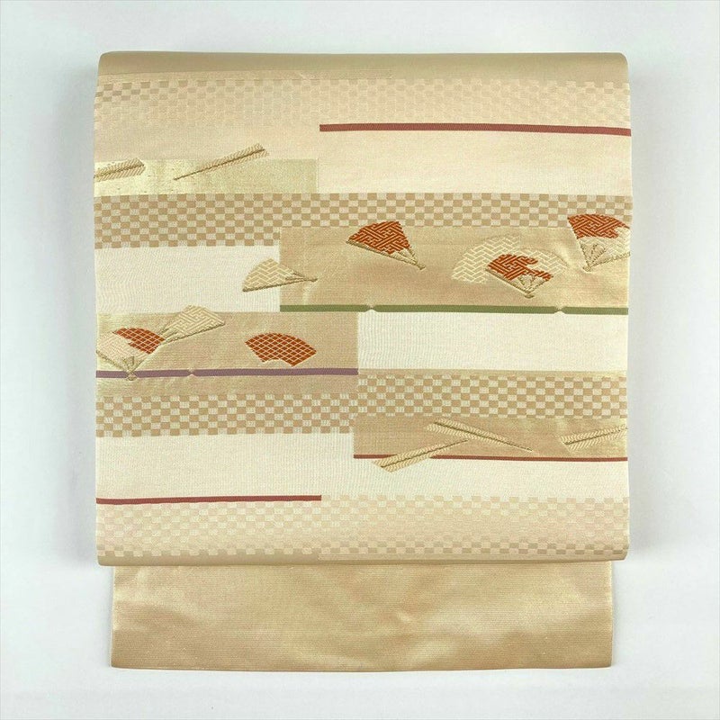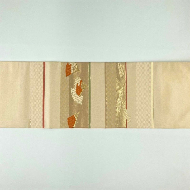 【色柄】生成り色 カジュアル 扇子 地紙 市松 切箔 金糸