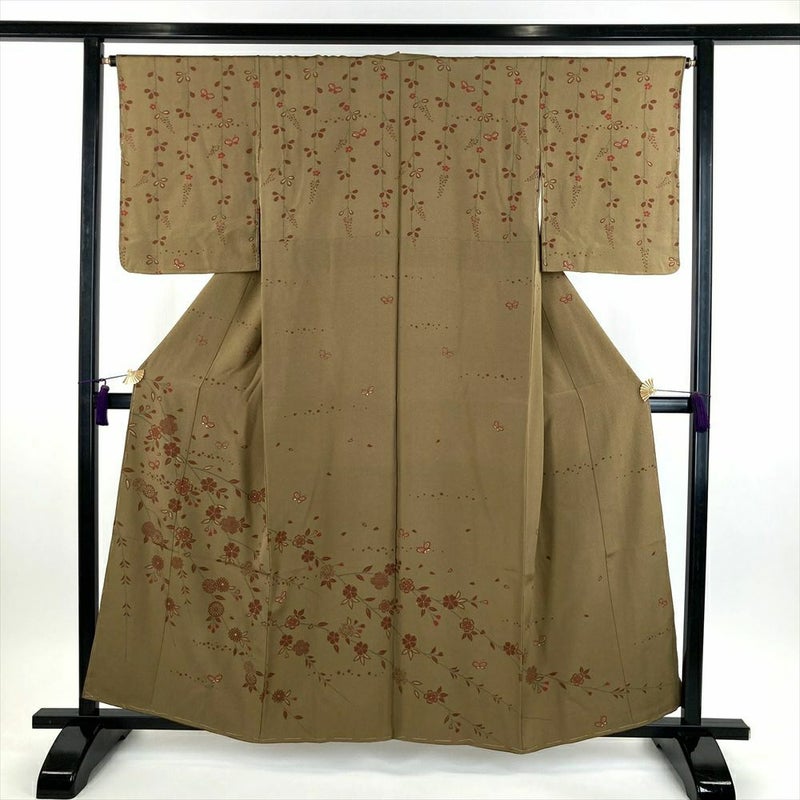 【色柄】茶 フォーマル 金彩 枝垂桜 蝶
