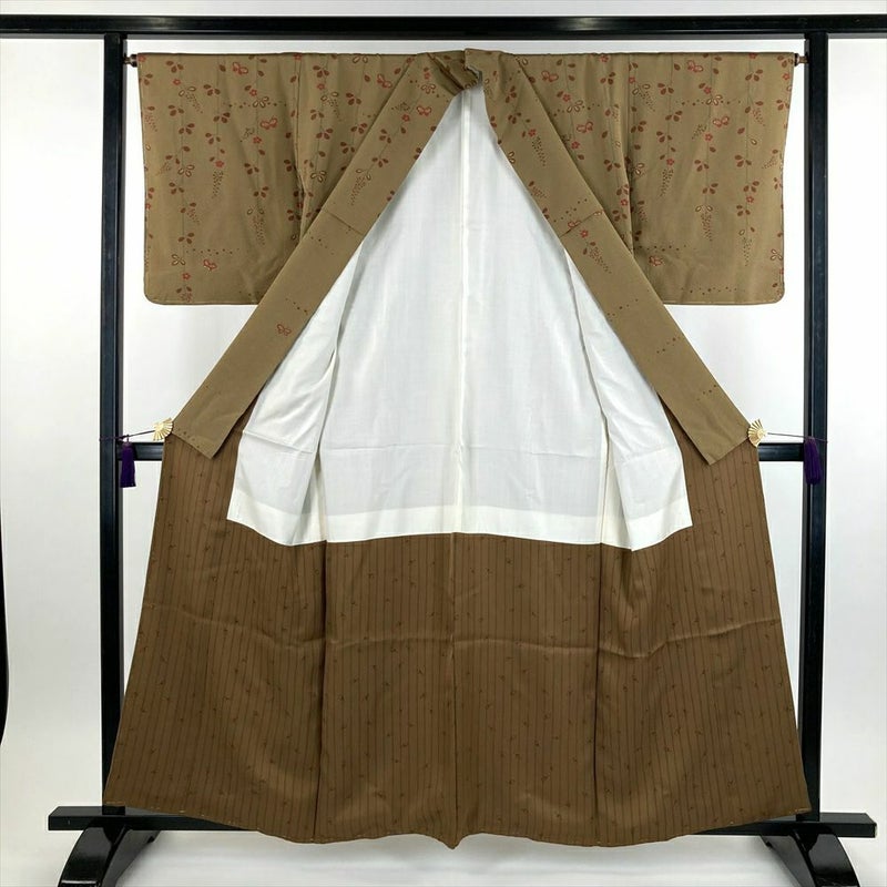 【セット39】(中古)訪問着&袋帯 茶 生成り フォーマル【身丈】155.5cm【裄丈】66.5cm