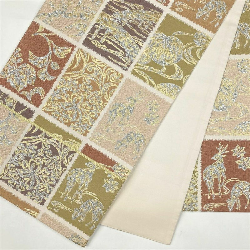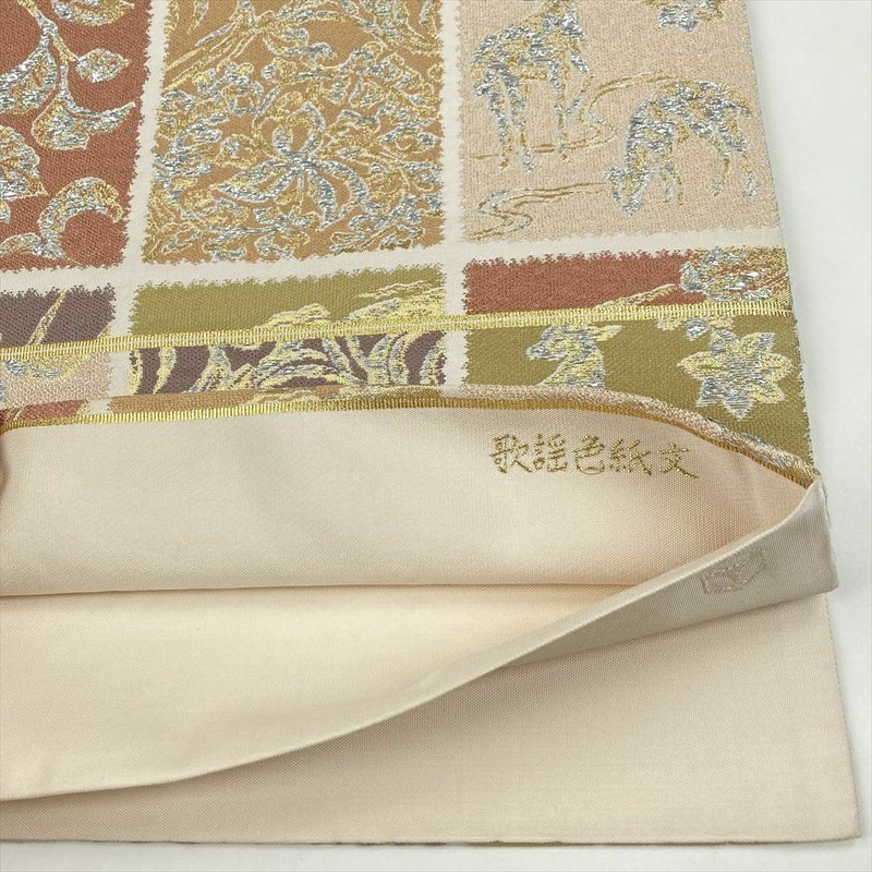 【色柄】生成り セミフォーマル カジュアル 色紙 花唐草 水辺 紅葉と鹿 梅 切箔 六通