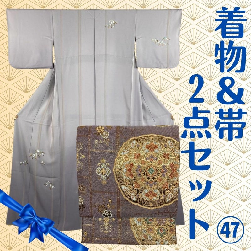【セット47】(中古)訪問着&袋帯 グレー 紫 フォーマル【身丈】162.5cm【裄丈】65.5cm