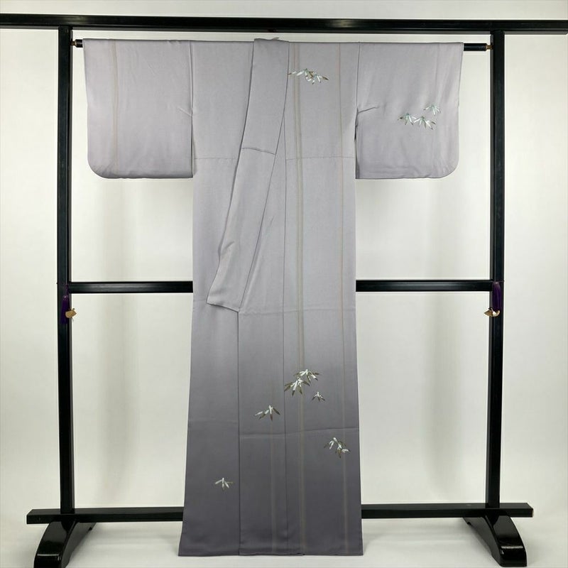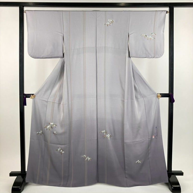 正絹 金彩 訪問着-灰紫 裾ぼかし 笹柄-
