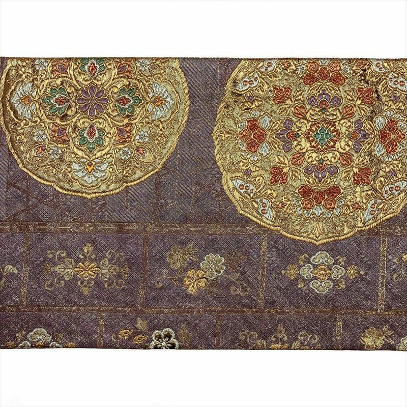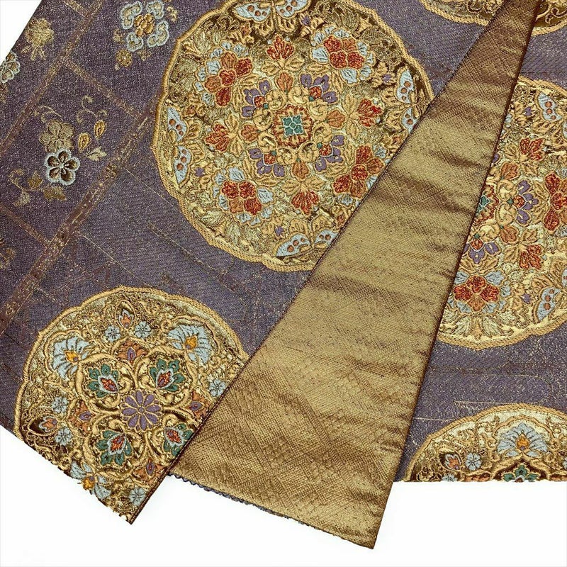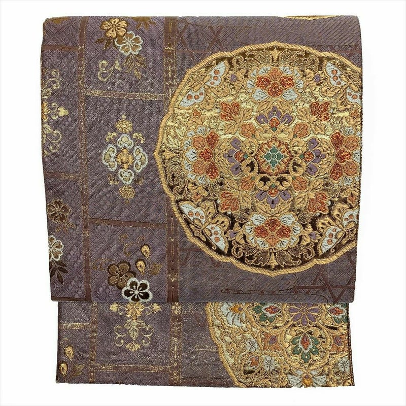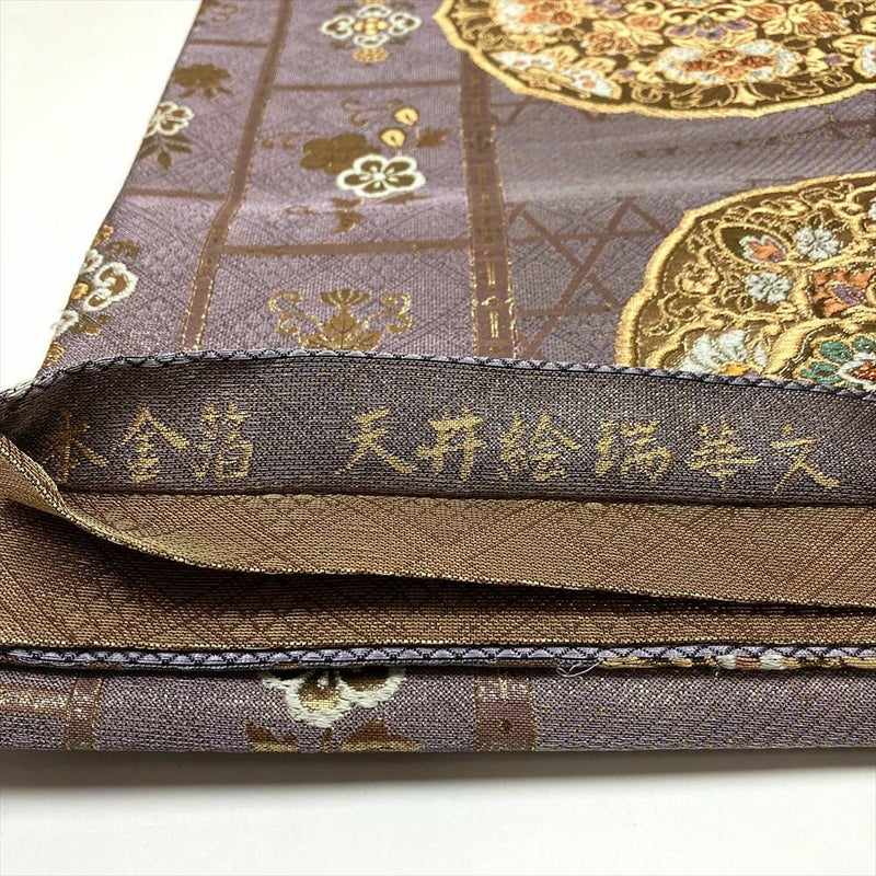 格天井の無地織りに豪華な大華文を織り込んだ格調ある袋帯です。