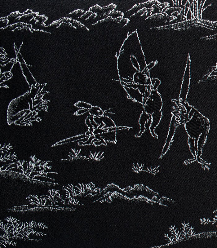 (新品)リバーシブル半幅帯 梅:鳥獣戯画 黒 都粋