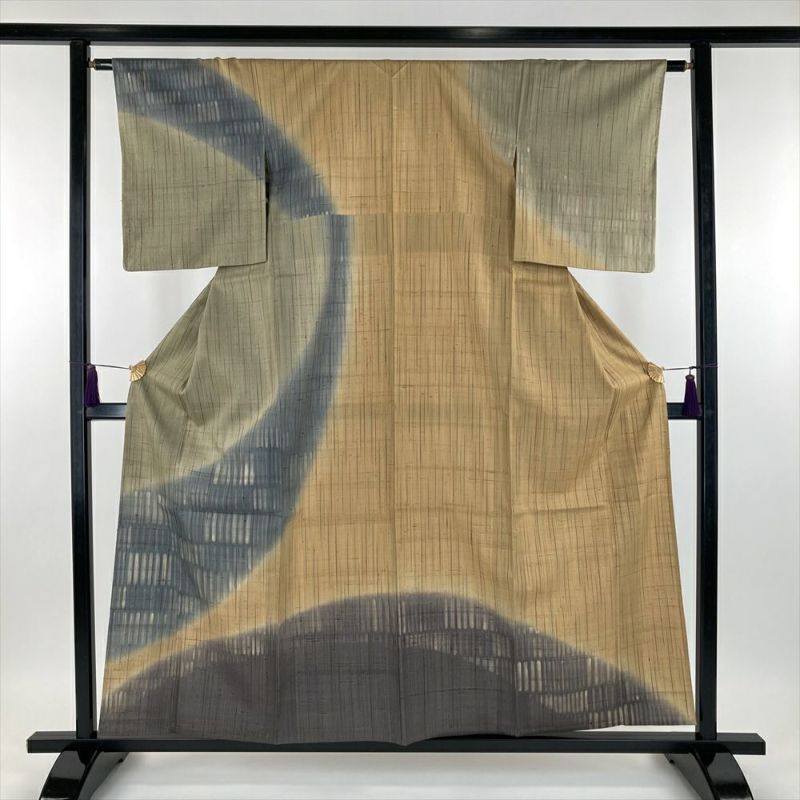 一ではなく、節があるのが特徴です。手触りはサラッとしていて張りがあり、シワになりにくく、単衣の着物に向いています。 染め:芥子色は、単なる黄色ではなく、奥行きのある複雑な色合いを持っています。光によって見え方が変わり、深みのある表情を見せてくれます。職人の手による、独創的で、美しく、流れるような「ぼかし染め」が見事です。
