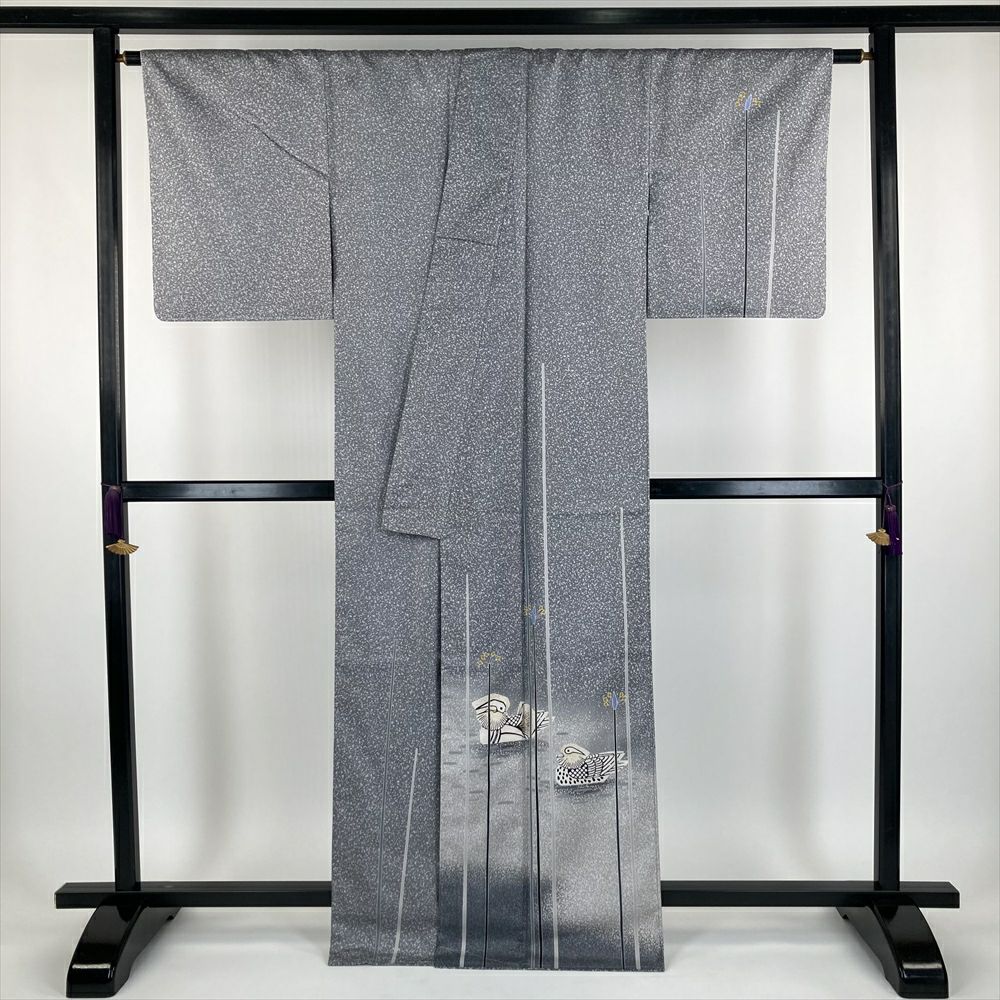 (中古)TOKIOetTOKI 羽田登喜氏 訪問着 グレー 灰色 セミフォーマル 染め 金彩 蒔糊 鴛鴦 袷【身丈】160.5cm【裄丈】66cm