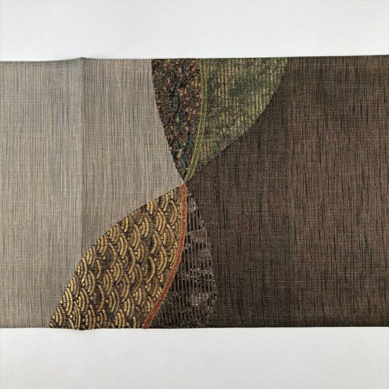 (中古)藤林徳扇 袋帯 灰茶色 金色 藤林徳扇 苑寿 セミフォーマル カジュアル 六通 織り 太箔 和紙 青海波