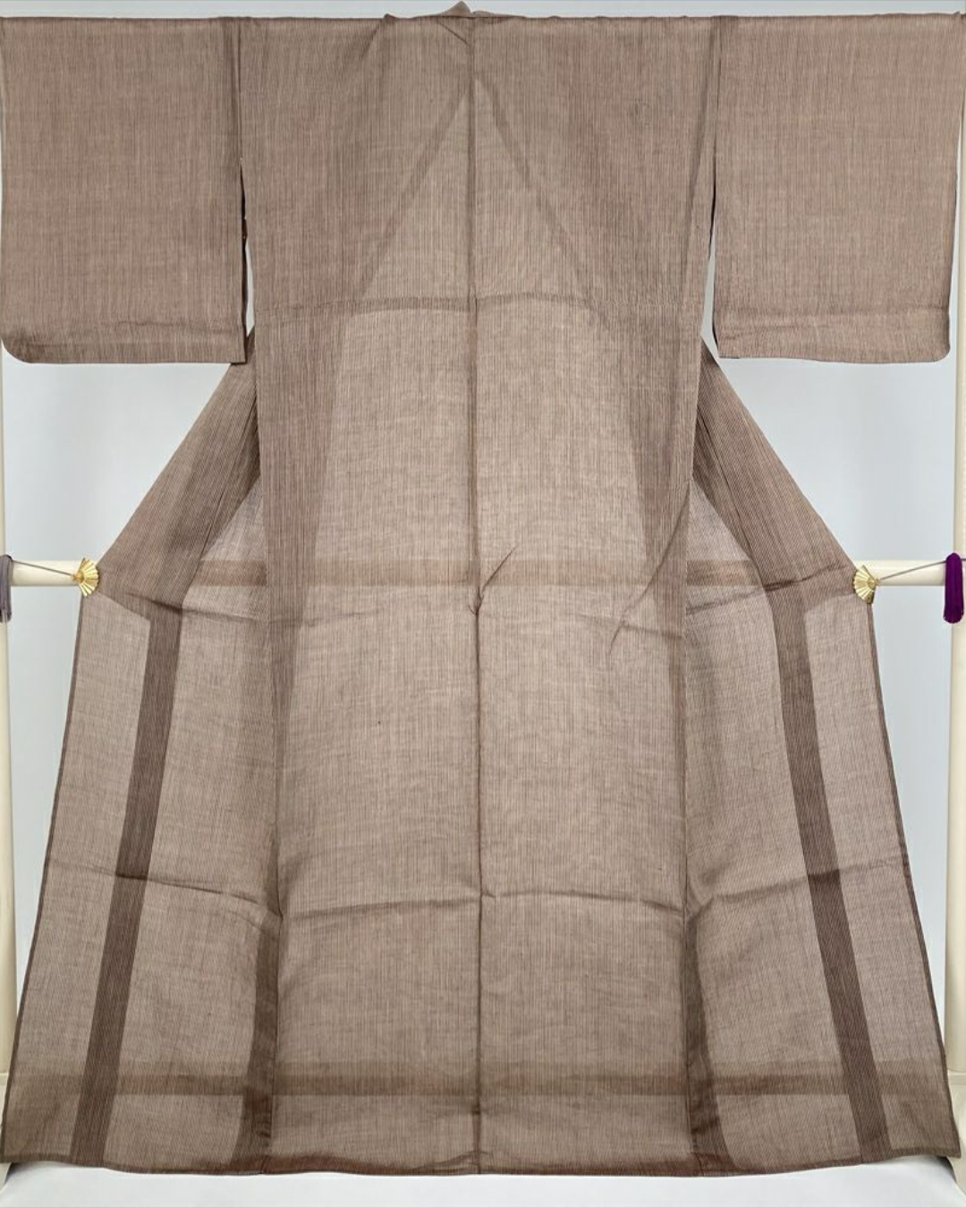 | 麻着物 | 小千谷縮・生成りベースに薄グレーの細縞 | 軽やかなストライプでスタイルアップ |