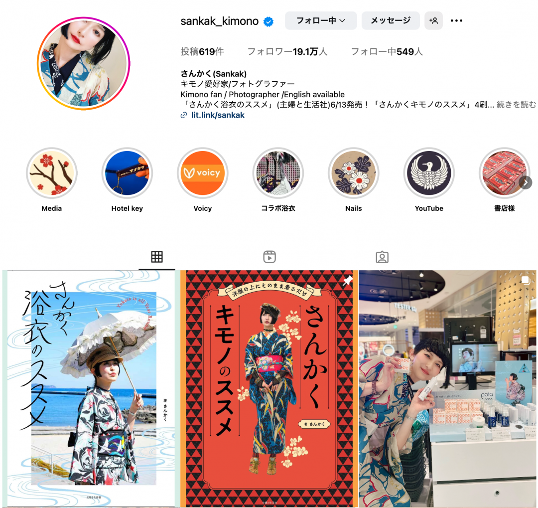 キモノ愛好家/フォトグラファーのさんかく(Sankak)さんのインスタグラムです。キモノに関する書籍の出版、化粧品とのコラボなどマルチに活躍されていらっしゃいます。