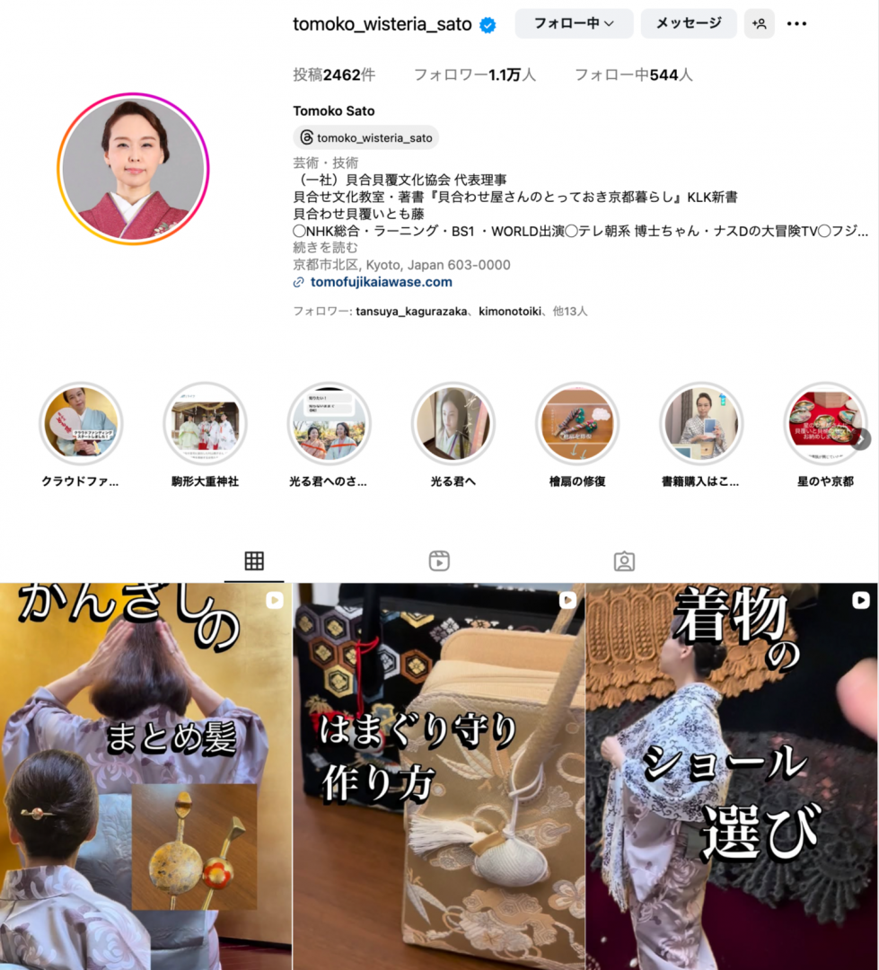 ○ 「デジタル時代の師範」として知られるきものすなおさ( https://www.instagram.com/kimonosunao/ )は、一級着付け技能士の知識を活かし、YouTubeで詳細な着付けチュートリアルを発信。特に60代以上の視聴者から絶大な支持を得ており、着物の「本格的な学び」を求める大人世代の強い味方です。「黒留袖の会」のようなコミュニティ活動を通じて、視聴者を受動的なファンから、積極的に着物を楽しむ「仲間」へと変えています。