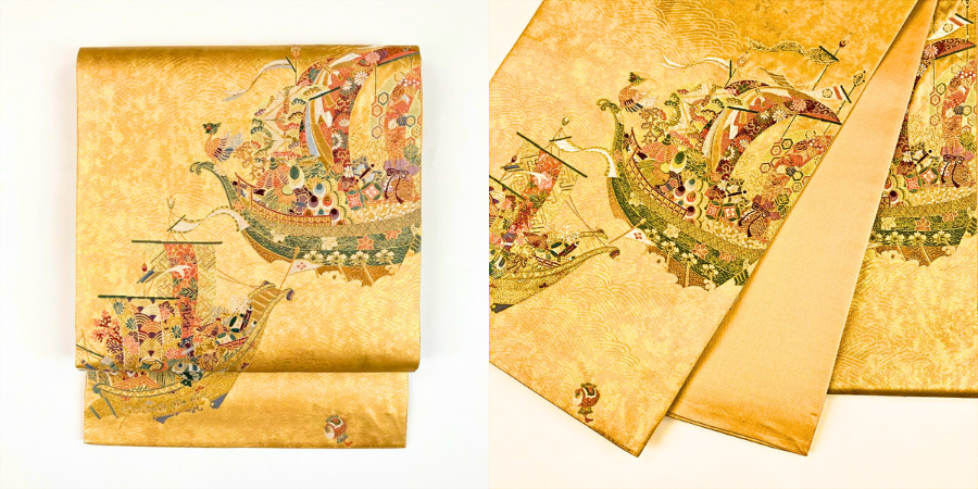 | 袋帯(ふくろおび) | ★★★ | 約440 cm/31 cm | 最も格が高く、留袖・訪問着などの礼装に。金銀糸や華やかな織り柄が多い。二重太鼓に結ぶのが一般的。 |