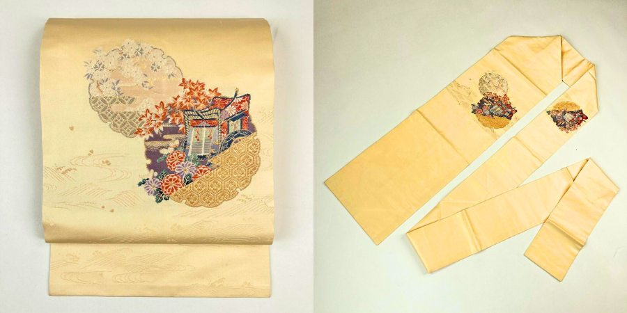 | 京袋帯(きょうふくろおび) | ★★☆ | 約380 cm/31 cm | 名古屋帯と袋帯の中間。柄出しが豪華で、ちょっと改まったお出かけに便利。軽量なので長時間でも疲れにくいのが特徴。 |