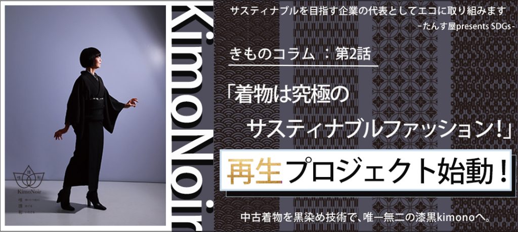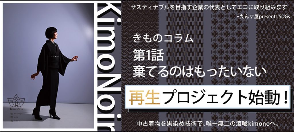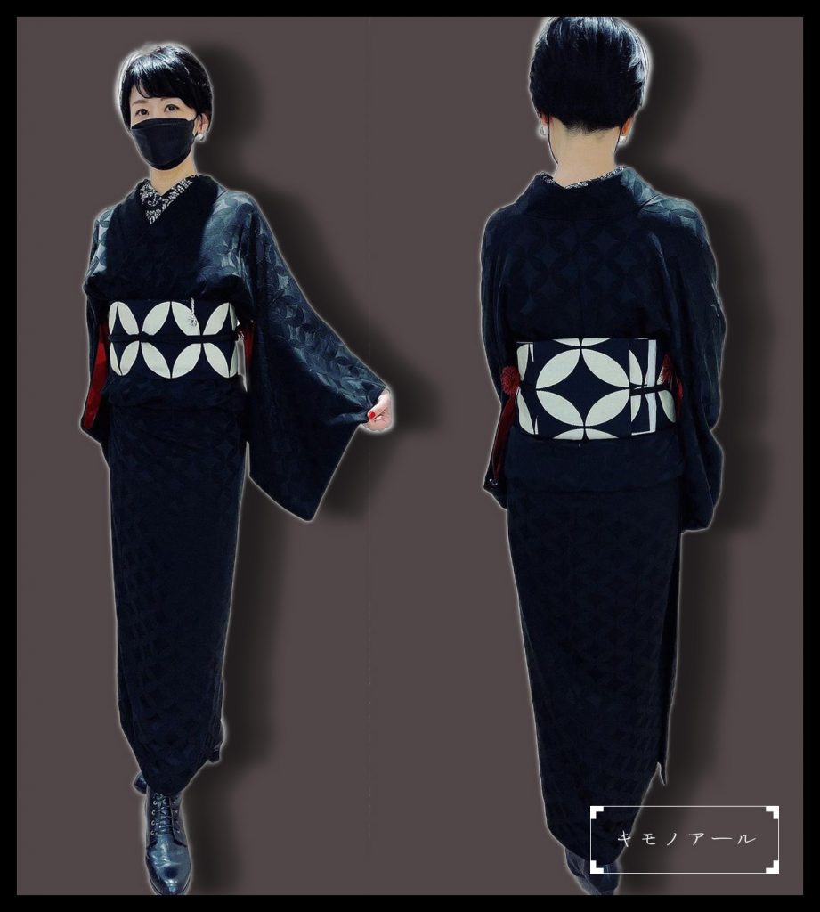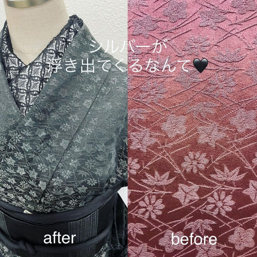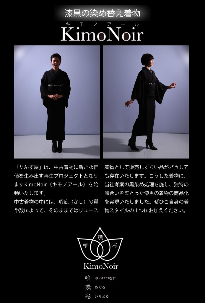 現在、キモノアールでご提案しているのが、黒染めをして生まれ変わらせた着物です。