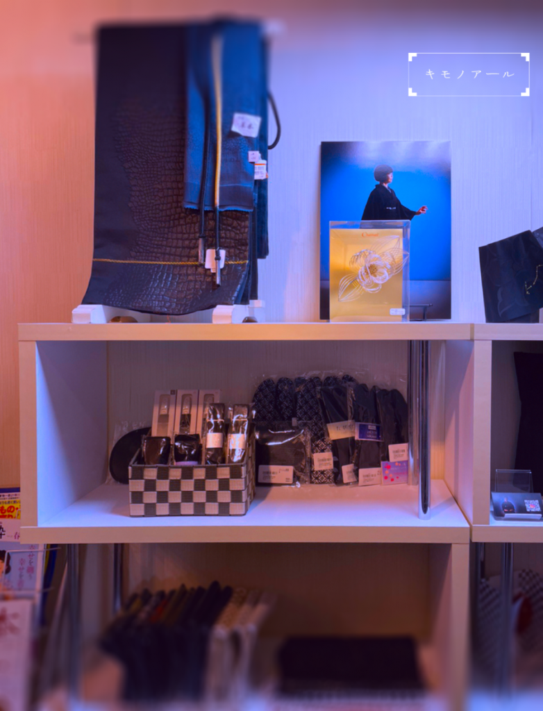 「MEGAたんす屋羽田エアポートガーデン店」で「キモノアール」のアンテナショップとして、常設展示・販売をしています。