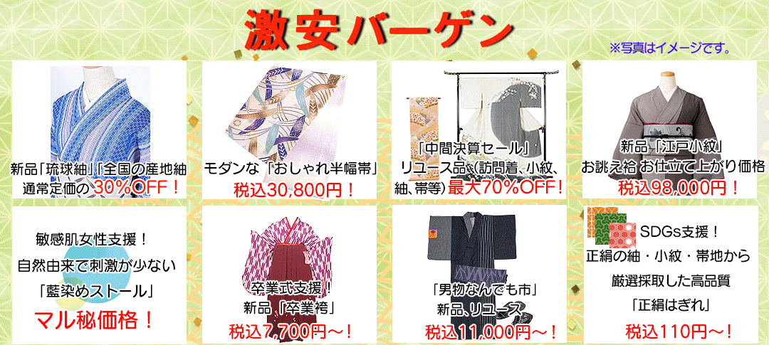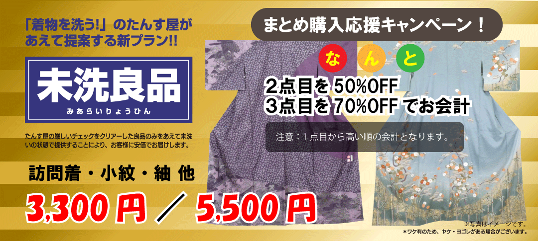 新規のお客様につきまして、LINEのMEGAたんす屋公式アカウントにお友達登録していただくとリユース着物・帯が、なんと110円(税込)でお持ち帰りいただけます。