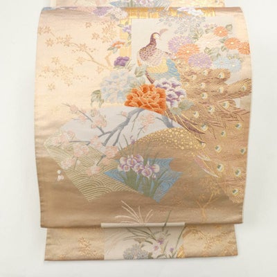 (中古)袋帯 金 色紙 扇面 牡丹 菊 桜 鳳凰 鳥 紅葉 フォーマルのレビュー