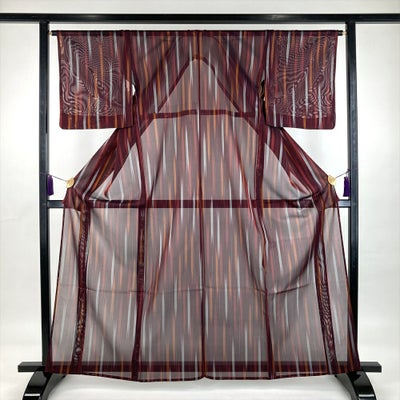 (中古) 夏紬 臙脂色 赤色カジュアル 途切れ縞 矢羽根 M【身丈】161cm【裄丈】65cmのレビュー