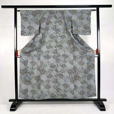 (中古)単衣小紋 グレー カジュアル 縮緬 小花 菱 ひとえ SS【身丈】154cm【裄丈】63.5cmのレビュー