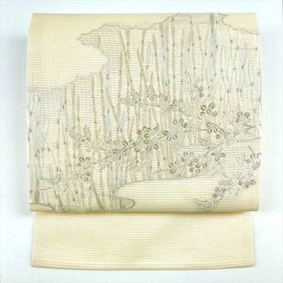 (中古)夏名古屋帯 生成り カジュアル 名古屋仕立て 絽 銀糸 木賊 萩のレビュー