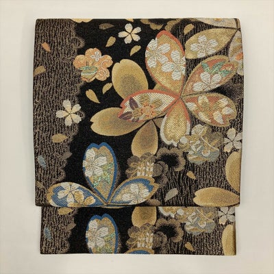 (中古)振袖用袋帯 黒 フォーマル 六通 金糸 桜のレビュー