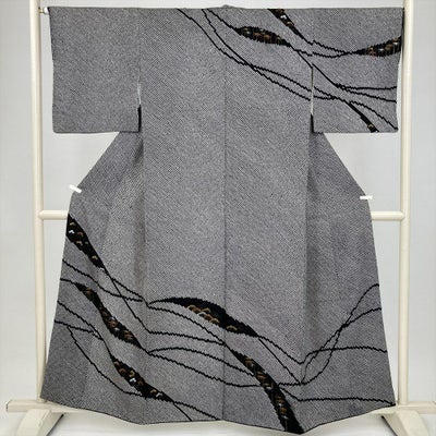 (中古) 訪問着 黒 白 セミフォーマル 鹿の子絞り 梅 笹 袷 絹【身丈】154cm【裄丈】67.5cmのレビュー